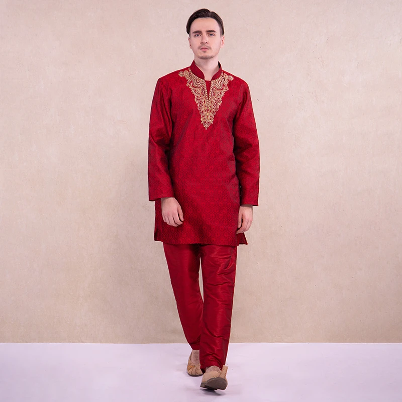 Kurta For Men Indian Traditional Clothing National Style Kurtis Sets Breathable Thin Section Red Loose Embroidery Kurti Suit India Pakistan Clothing Aliexpress